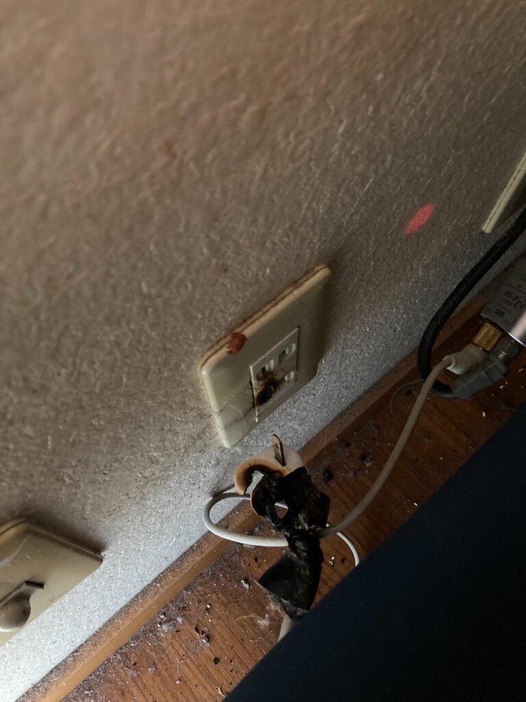 【施工事例】家具裏で発生した焼損コンセントの調査および交換工事